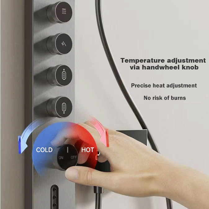 Chorros corporales en caderas y piernas: los finos chorros de niebla brindan una cobertura refrescante para una experiencia de ducha revitalizante.