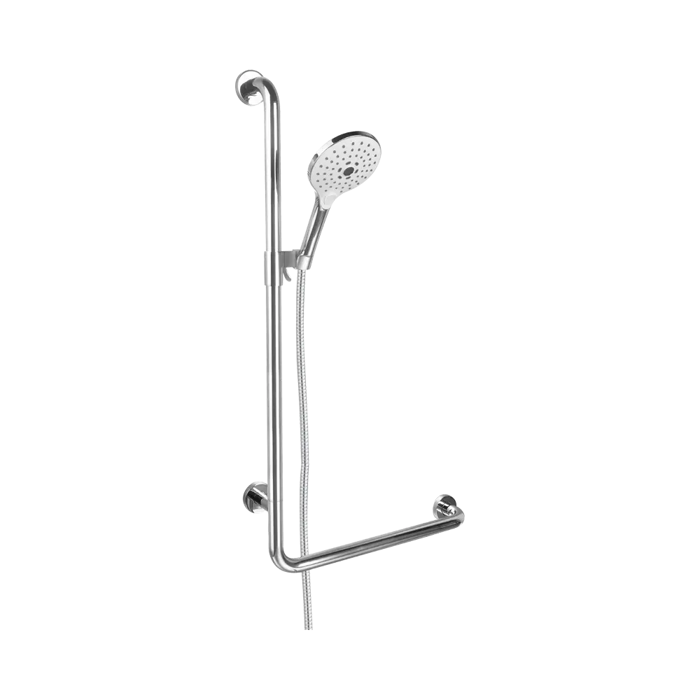 Combina una ducha de mano ergonómica con soporte de asistencia, ideal para usuarios mayores, personas con necesidades de movilidad o familias que buscan seguridad y comodidad.